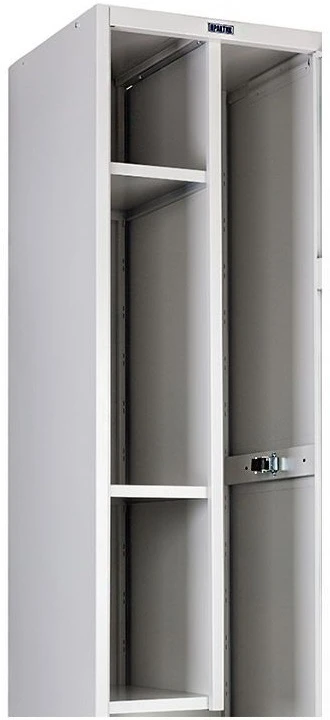 Одностворчатый металлический шкаф с распашной дверью для размещения хозяйственного и уборочного инвентаря, чистящих и дезинфицирующих средств, а также одежды обслуживающего персонала больниц, поликлиник, консультационно-диагностических и реабилитационных центров, лечебно-профилактических учреждений.