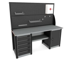 - Боковые стенки тумбочек имеют перфорированный профиль, на котором удобно размещать верстачные аксессуары.