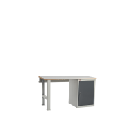 Предпочтительная конфигурация верстака включает одну или две тумбы: заменяя опоры, они усиливают устойчивость стола и позволяют выиграть в эргономике за счёт расширения рабочего пространства для размещения деталей, метизов, инструмента, материалов, чертежей. Тумба с дверцей представляет собой сварную конструкцию, где размещены две съёмные полки. Широкий угол распахивания дверцы – 130° – позволяет сразу оценить содержимое тумбы и легко найти нужный предмет. Замок – ключевой Euro-Locks немецкого производства.